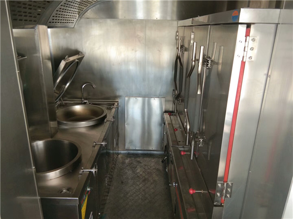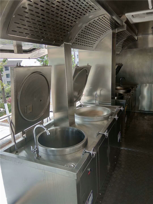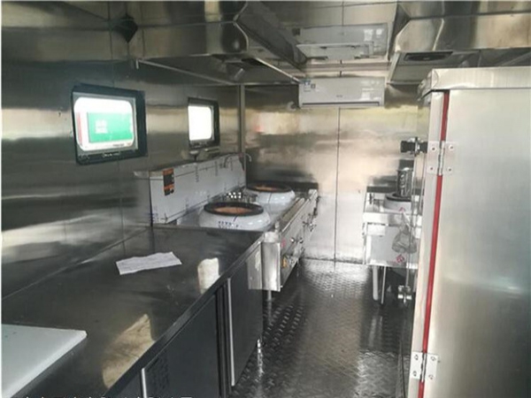 廂體外蒙材料可以采用玻璃鋼板或者彩鋼板,內(nèi)飾材料采用不銹鋼板或者玻璃鋼板或者彩鋼板,廂體兩側(cè)采用上翻結(jié)構(gòu)??梢栽O(shè)置單獨(dú)的隔離艙用于放置燃?xì)庠詈蛢?chǔ)物柜。車(chē)廂內(nèi)部可以根據(jù)實(shí)際使用情況配備:廚房專(zhuān)用燃?xì)庠?,水池,冰箱,電磁爐,開(kāi)水器,水箱等,也可以根據(jù)客戶(hù)要求配置,采用外接電源供電。 流動(dòng)餐飲車(chē)采用二類(lèi)汽車(chē)底盤(pán)改裝,車(chē)廂經(jīng)過(guò)特殊材料制作而成的專(zhuān)用汽車(chē)