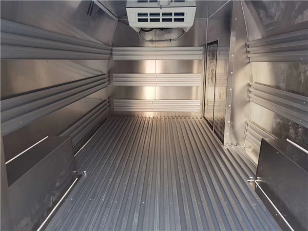 廂體:內部空間約3.5方,內外玻璃鋼材質,中間8cm高密度聚氨酯保溫,鋁花紋防滑底板,后門鎖件為不銹鋼。