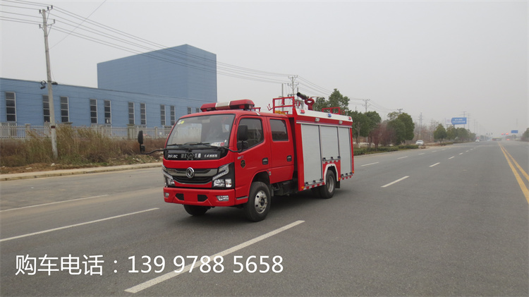 東風(fēng)2.5噸泡沫消防車(chē)(國(guó)六)水罐容積1.7立方米,B類(lèi)泡沫容積0.637立方米。