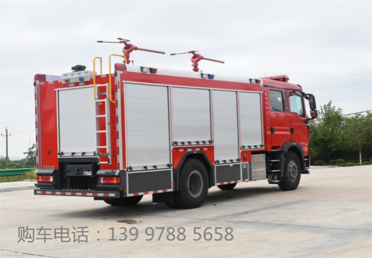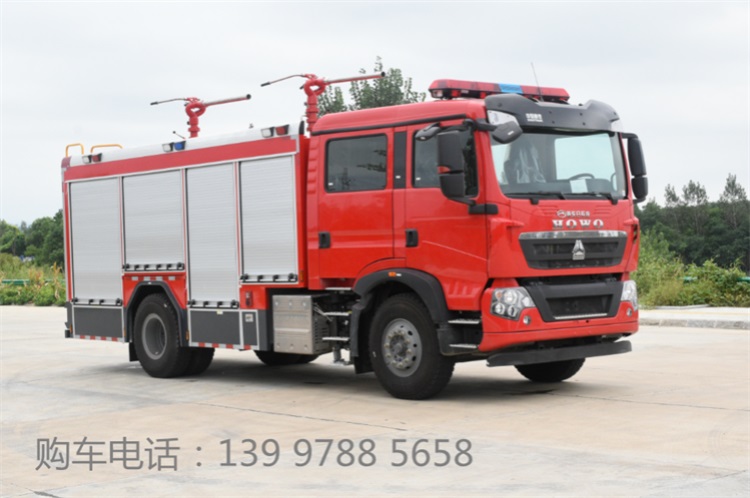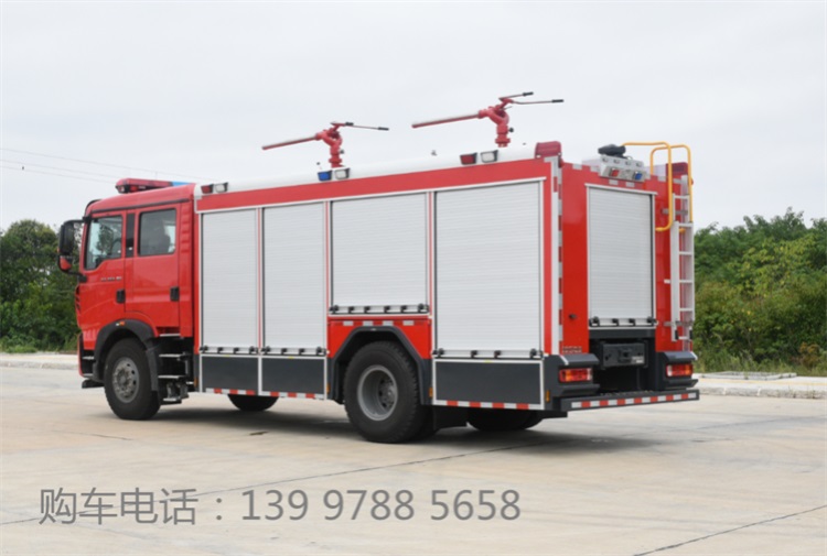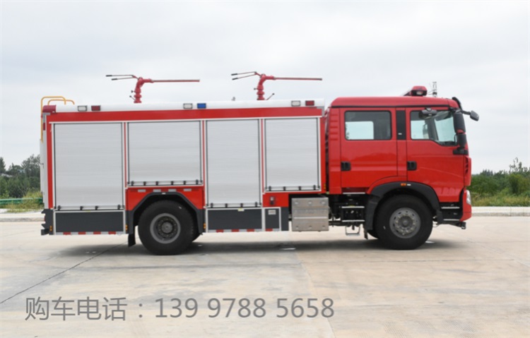 豪沃4噸干粉消防車,是一款純干粉消防車,上裝主要由二個2立方的干粉罐體組成,配備專用干粉消防炮。