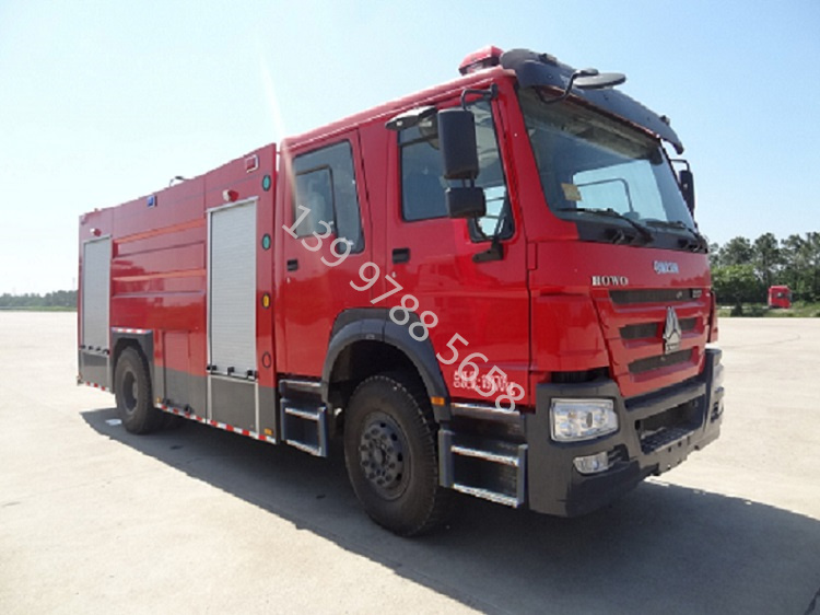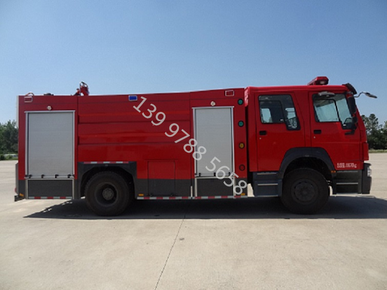 豪沃T5G8噸泡沫消防車圖片_高品質(zhì)_哪里賣,是一種設(shè)計(jì)制造成適宜消防隊(duì)員乘用、裝備各類消防器材..